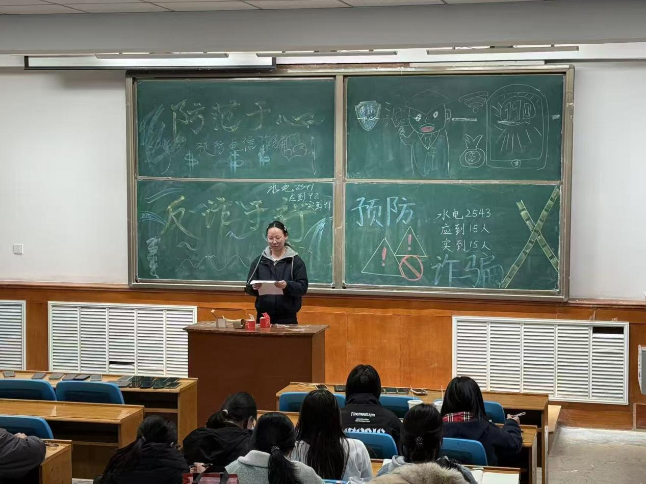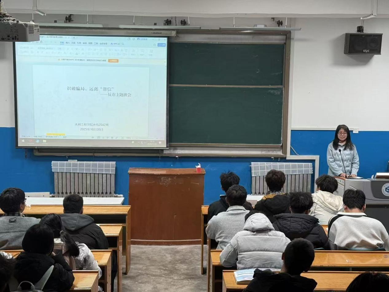 为进一步提升反诈宣传实效,有效应对诈骗风险,特别是提高新生群体风险防范意识。近日,水利工程学院组织各新生班级开展“增强反诈意识,守护校园平安”反诈宣传教育主题班会,为全院学子普及反诈知识,织密校园安全防护网。