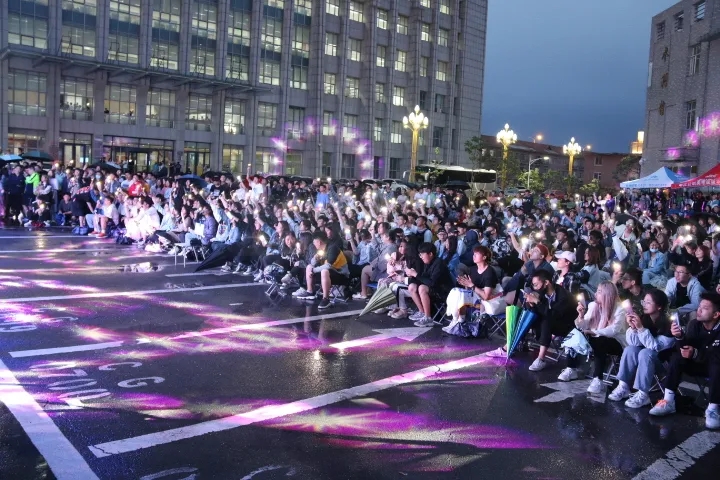 天公不作美,老天似乎不舍你们远行,淅淅沥沥地下起了雨,晚会在雨中拉开帷幕,同学们也都打着伞如约而至。活动伊始,一场由学院艺术团带来的歌伴舞《一荤一素》将晚会的气氛瞬间提升起来,而歌曲《挥着翅膀的女孩》不仅动感无限,而且寓意深远。唱跳舞《R&B all night》与《溯》更是直接火爆全场,进一步将火热的气氛渲染的淋漓尽致。