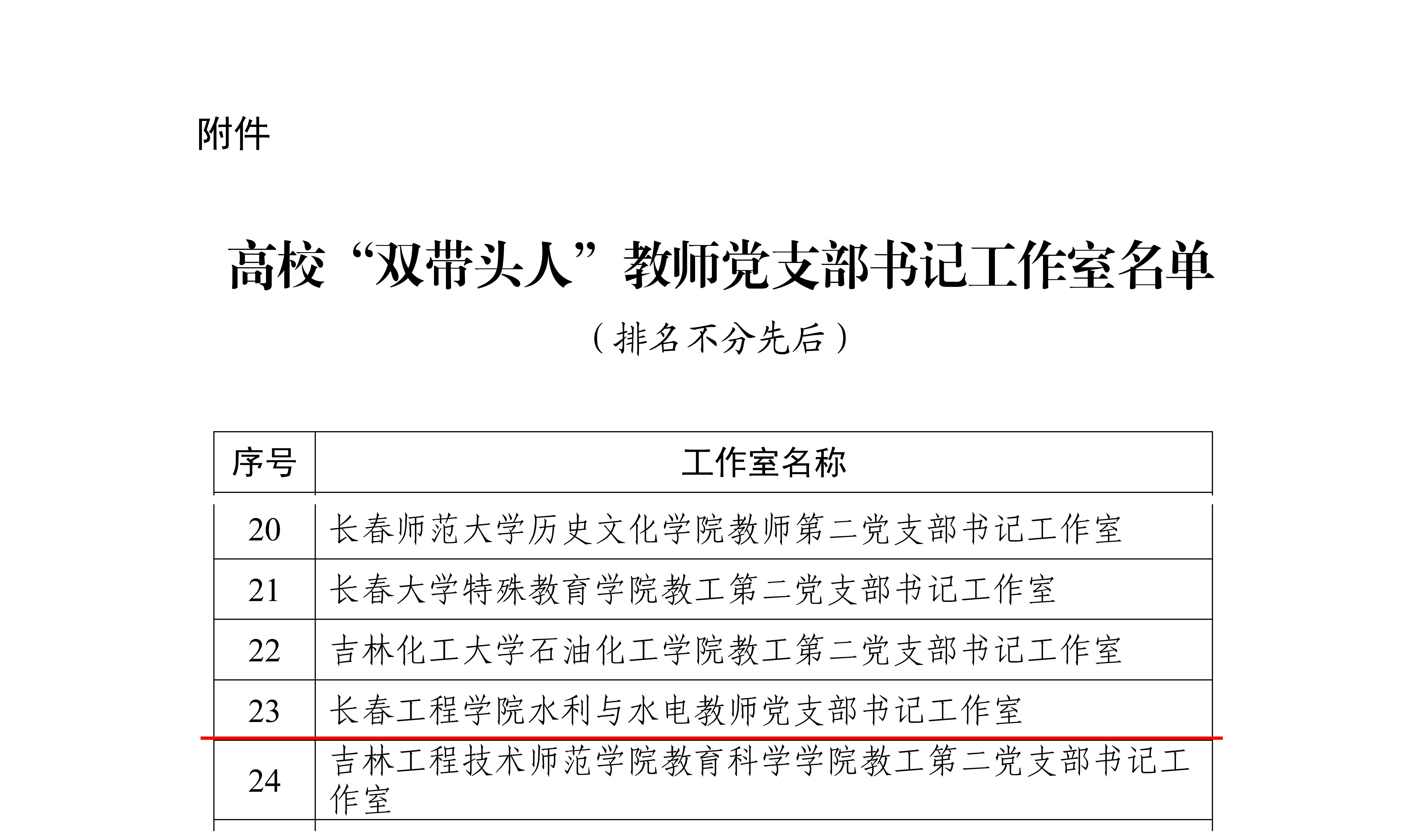 近日,中共吉林省委教育工作委员会公布了高校“双带头人”教师党支部书记工作室建设名单,我校水利工程学院水利与水电教师党支部书记工作室成功入选。